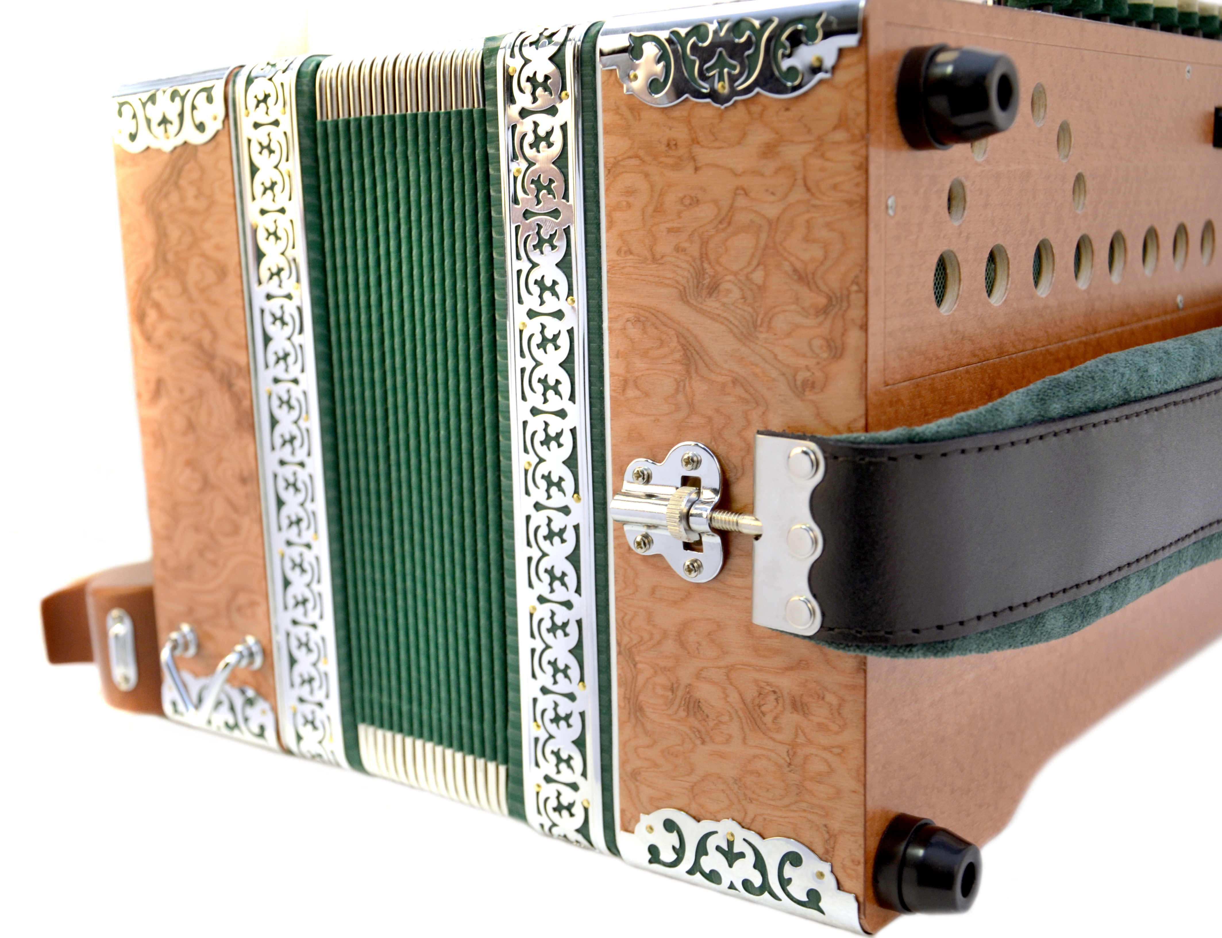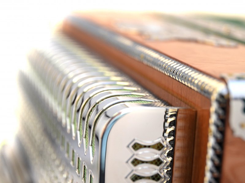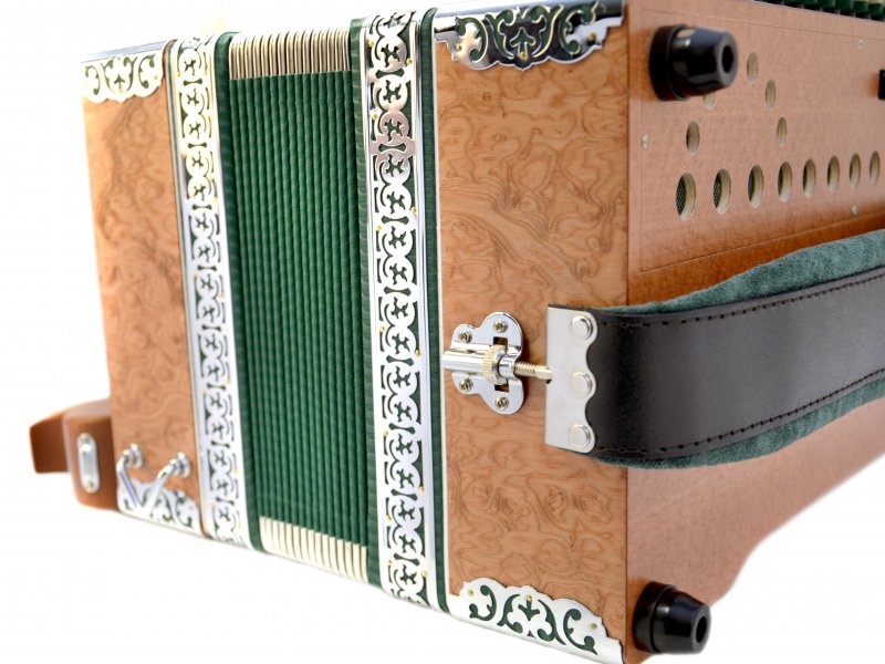 Die Sonorum Madrona/blau beeindruckt durch ihre schlichte Optik, bei der die Maserung des Erdbeerbaumes besonders zur Geltung kommt. Eine seidenmatt lackierte Holzoberfläche wird ergänzt von verchromten Edelstahlbeschlägen, wodurch die Harmonika ihren strahlenden Glanz erhält. Die traditionelle und robuste Ausführung mit Dural-Stimmenmaterial aus Italien garantiert Unempfindlichkeit und Langiebigkeit der Harmonika. Das ausgezeichnete Preis-Leistungsverhältnis ebnet dir bei diesem Instrument den Weg in die Profiklasse.
